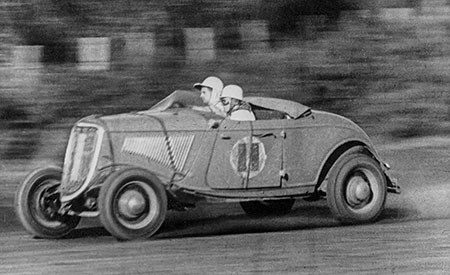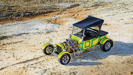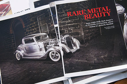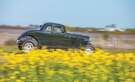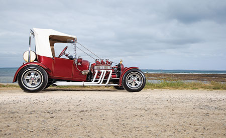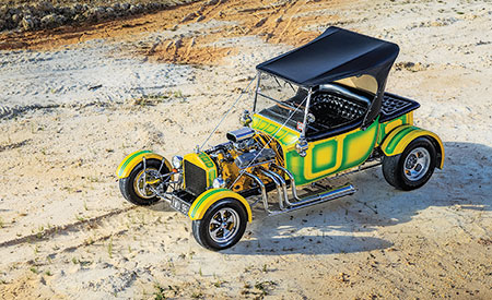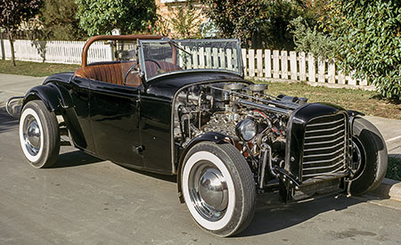 AHR publisher’s own ’50s-styled highboy Deuce roadster with all the traditional touches, like the Offy-equipped blown flathead, quick-change Halibrand diff, classic Guide headlamps, 15-inch Mercury steelies and big and little whitewalls.