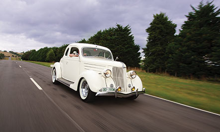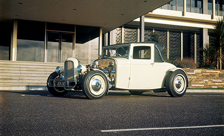 Neil ‘Ned’ Kelly went against his father’s wishes that he buy a new Holden and instead bought an old ’35 Ford Coupe and began transforming it into a classic hot rod. Kelly successfully showed the coupe, drag raced it, and drove it every day through the 1960s. The neat coupe still resides in Kelly’s garage in suburban Melbourne.