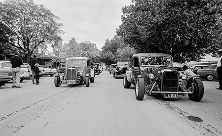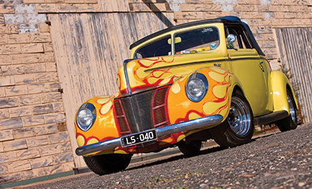 Veteran Melbourne hot rodder Leo Spessott has driven his flamed yellow ’40 Ford convertible to every ASRF Nationals staged to date. Spessott bought the car in the 1960s and built it into a hot rod capable of transporting his family to rod runs.