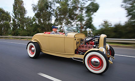Sydney hot rodder Kevin Daley vowed never to sell the channelled ’32 roadster he built way back in the 1960s, and he was as good as his word. Kevin’s daughter Leanne now owns and treasures the car, and why not, her first ever ride in a car was when she was driven home from hospital in the roadster after her birth.